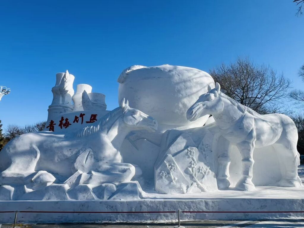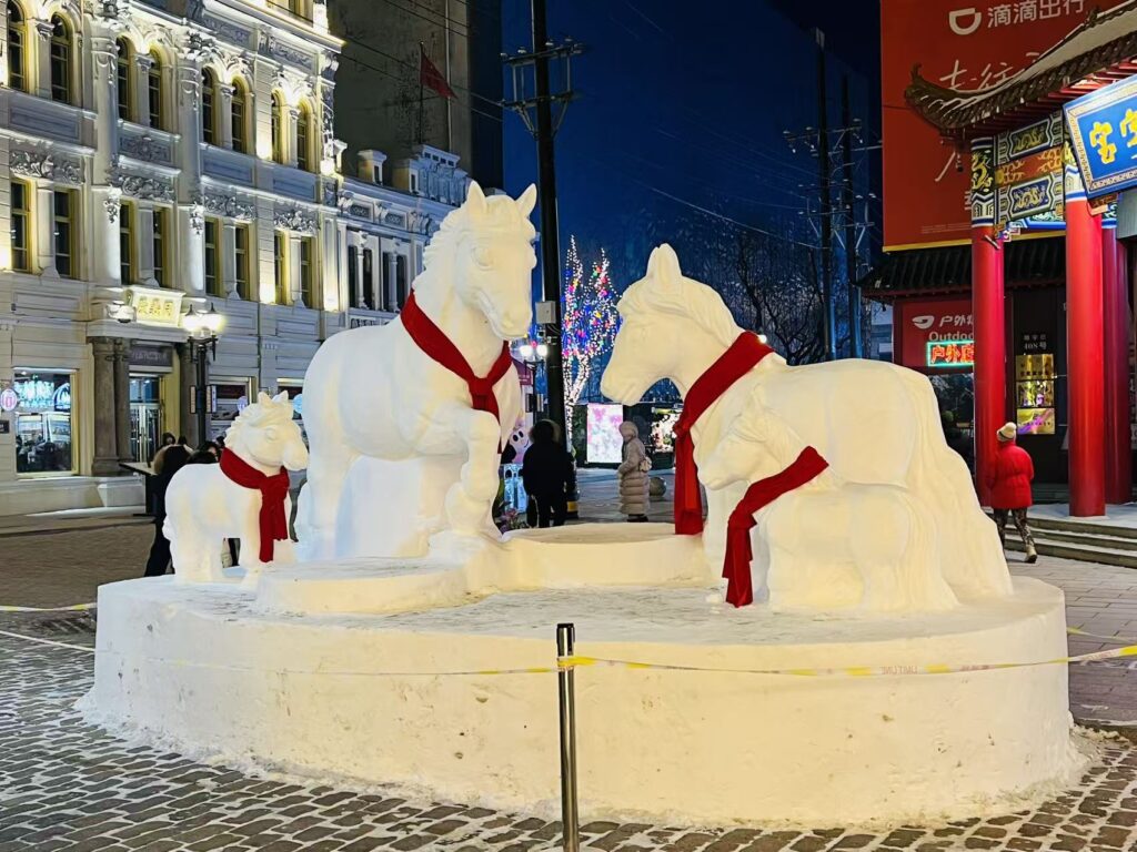 👇これはハルビンの氷雪芸術家たちが雪で彫刻した作品で、毎年大量の氷を集めて壮大な氷像が制作されます。