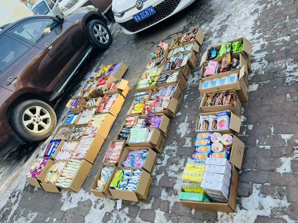 👇これはあまり見慣れない光景かもしれません。ハルビンは北緯約45度に位置しており、冬は寒く長く、日中でもマイナス20度になることも珍しくありません。そのため、冷蔵庫やアイスケースに入れないアイスクリームは、住宅街で通行の邪魔にならない場所に出して販売することも許されています。